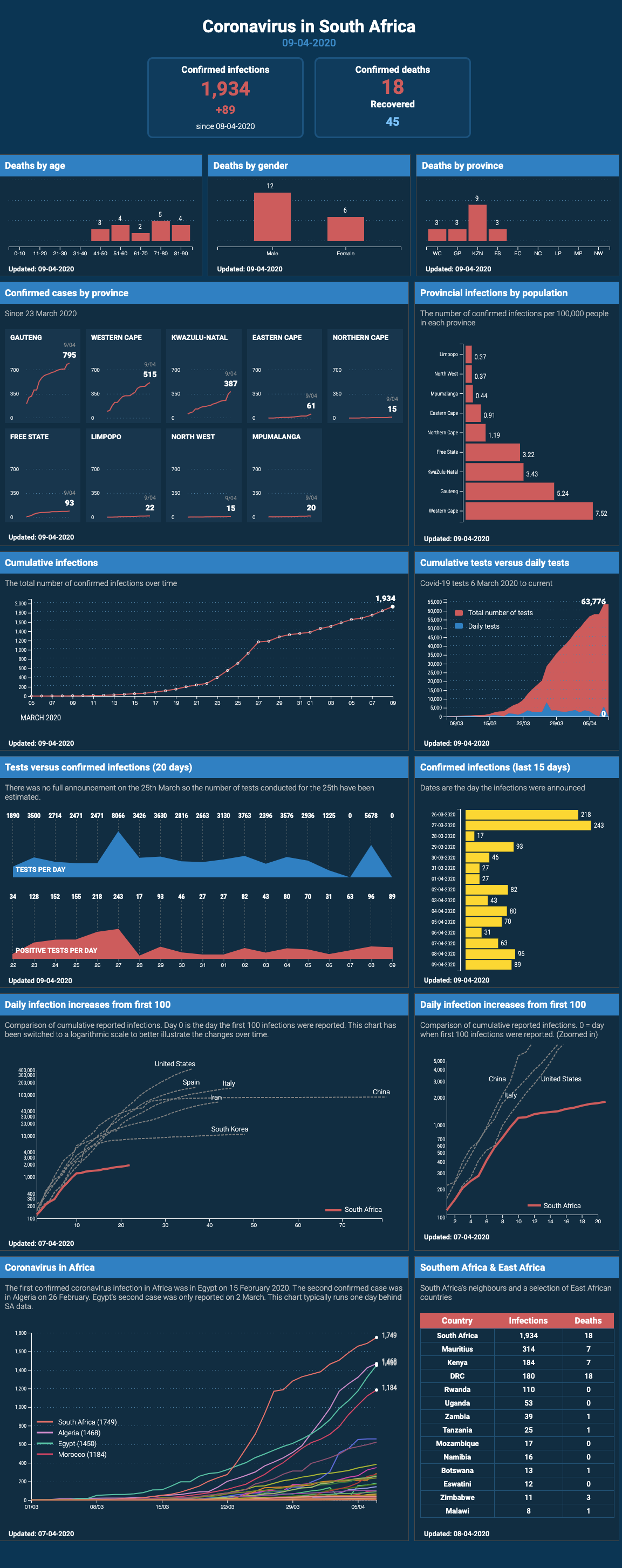 “Since the lockdown came into effect, the rate at which new cases have been identified here in South Africa has slowed significantly. From 1,170 confirmed cases on the 27th of March, the number of confirmed cases today stands at 1,934.”